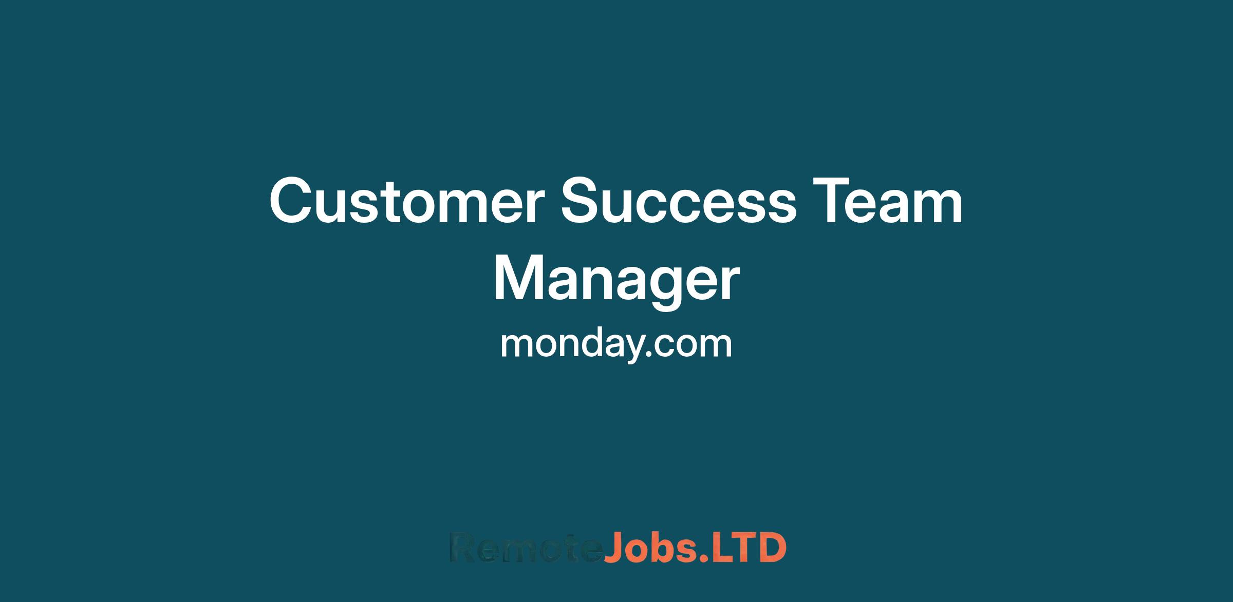Our Customer Success team is growing rapidly, and we are looking for a Team Lead to expand and manage a group of HT CSMs! This individual will help drive Monday.com's success and customer retention.