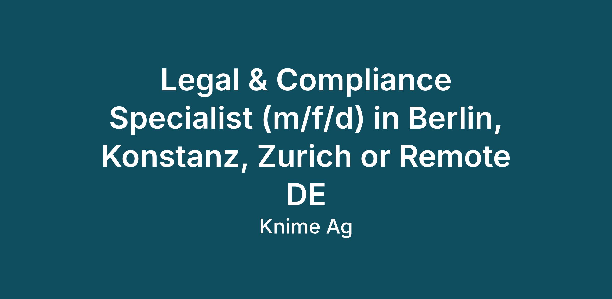 Join us as Legal & Compliance Specialist in Berlin, Konstanz, Zurich or Remote DE* and help shape the intersection of Legal, Compliance, and Data Protection with a strong focus on scalable legal operations and a clear development path towards Information Security (Iso 27001/SOC 2).