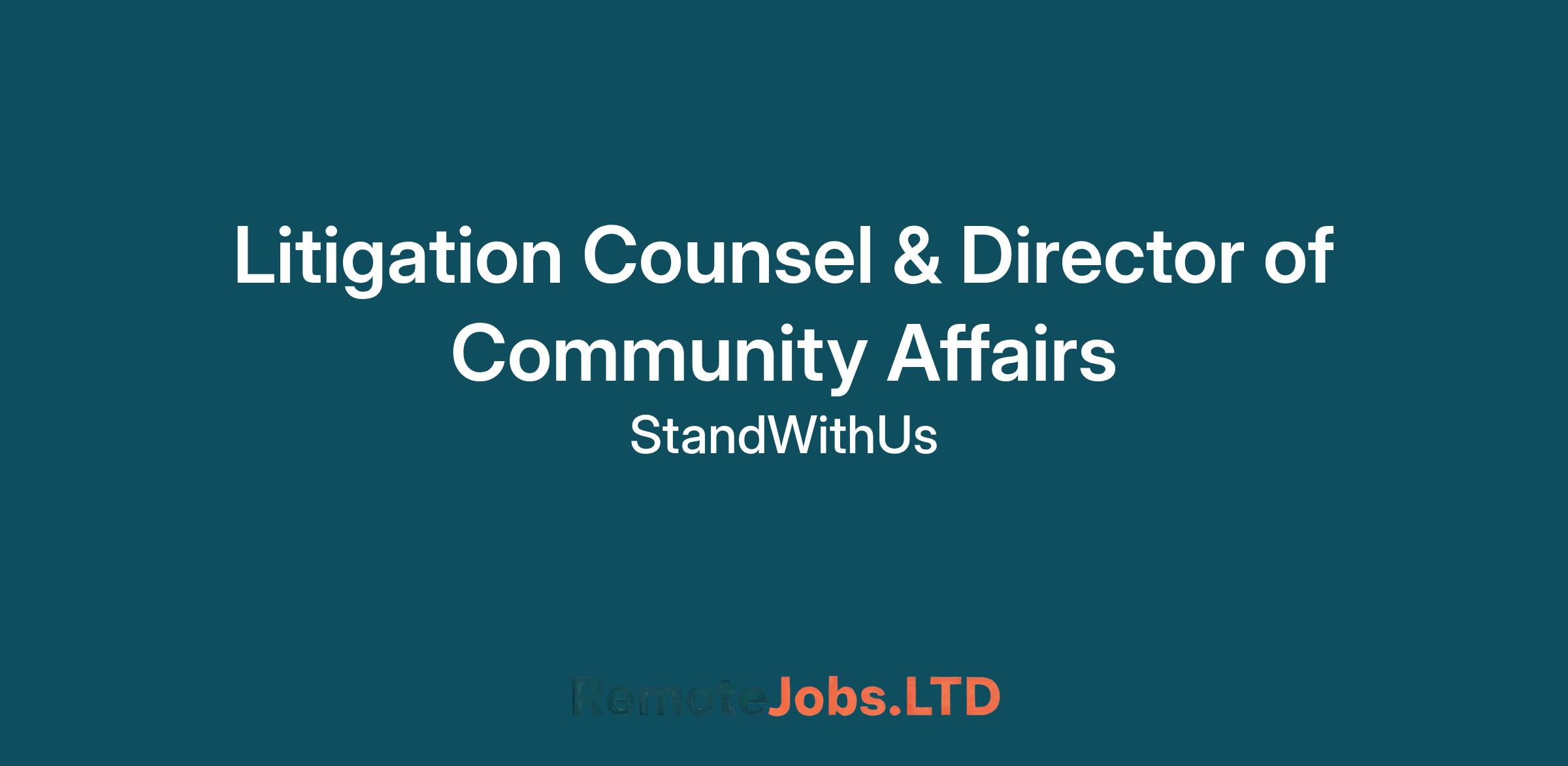 The new role of Litigation Counsel and Director of Community Affairs will focus on our growing practice of strategic impact litigation and community intake, our fastest growing area. This position will report directly to the StandWithUs Saidoff Law Director and the StandWithUs Director of Legal Policy and Litigation.