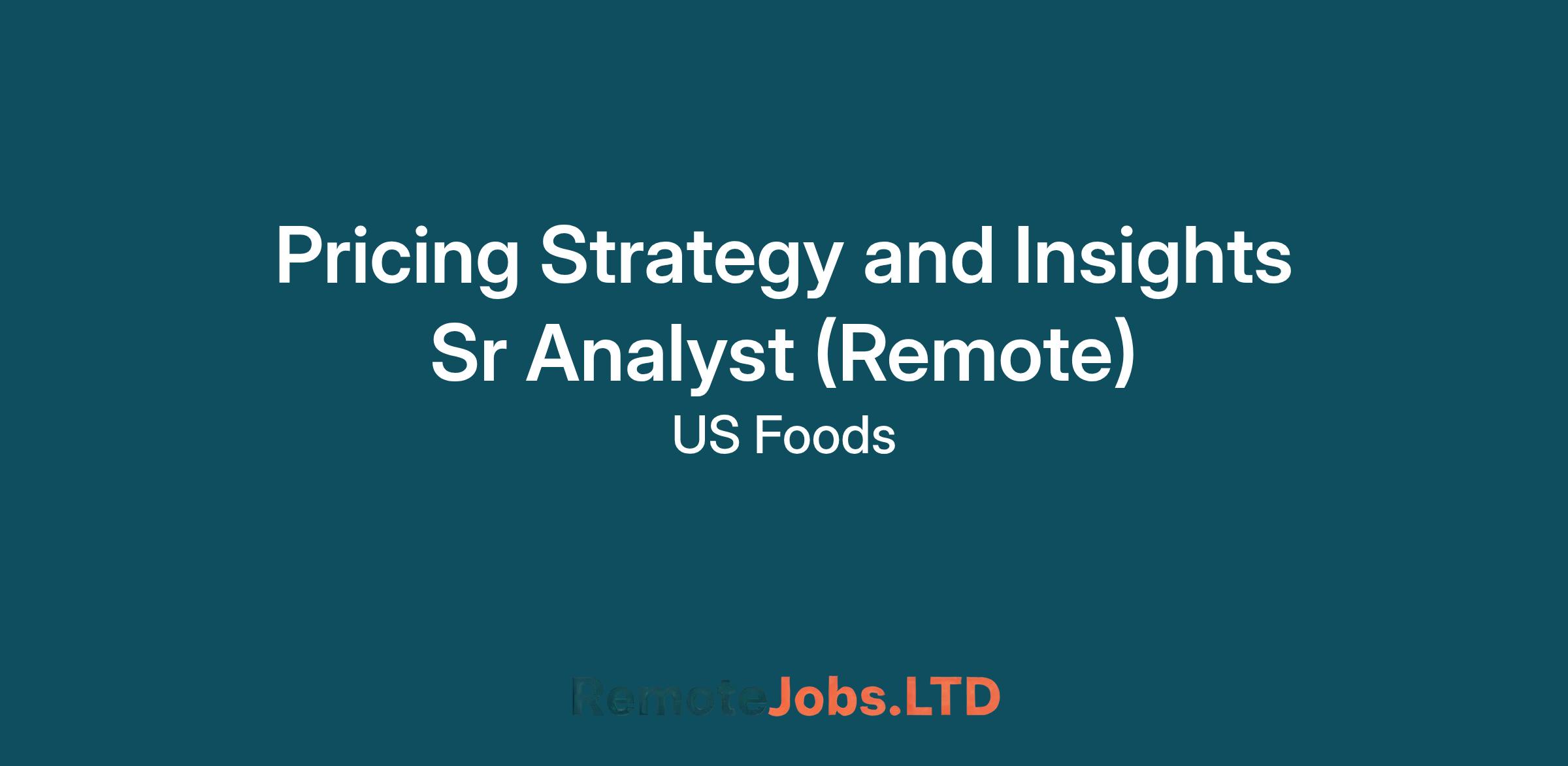 The Pricing Strategy and Insights Sr Analyst is responsible for delivering analysis, reporting, and insights that support the development and execution of pricing strategies at US Foods. This includes analyzing pricing performance, testing pricing actions, and partnering with field pricing teams to inform decisions and improve outcomes. The role requires strong analytical skills, attention to detail, and the ability to communicate findings effectively to both corporate and field audiences.ESSENTIAL DUTIES AND RESPONSIBILITIES