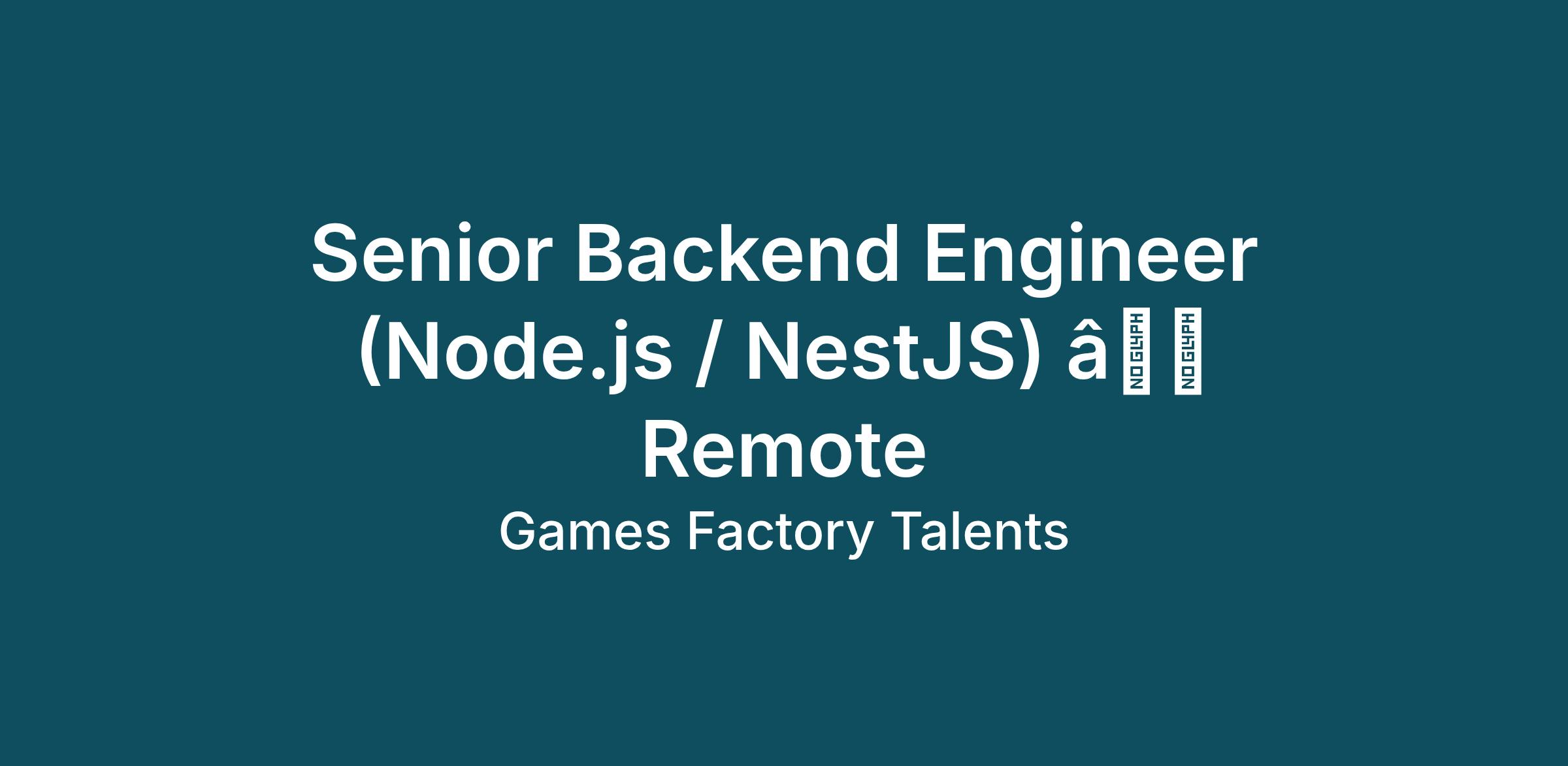 <\/html>"}}],"isMobile":false,"iframe":"true","jobType":"Full time","applyName":"Apply Now","zsoid":"20066869977","isRemoteJob":true,"FontFamily":"Verdana, Geneva, sans\-serif","jobOtherDetails":[{"fieldLabel":"Industry","uitype":2,"value":"Technology"}],"headerName":"Senior Backend Engineer (Node.js \/ NestJS) â Remote","widgetId":"18387000000011497","awliIntegId":"urn:li:organization:18747003","isJobBoard":"false","userId":"18387000000184029","attachArr":[],"awliApiKey":"77uwh5kyuhcwyu","customTemplate":"3","awliHashKey":"11e495d251cf8c6a5264f5c6054ebf8ddda5c6fcc4c5609fc6b92ba22c6b4894a3a6687359218de13624ece3f2cbbaa1a316a646d15830e635e4f479db91f802","isCandidateLoginEnabled":true,"jobId":"18387000011457233","FontSize":"12","location":"","embedsource":"CareerSite","logoId":"2q0x2436cdb89796a4973a311aad625510707"}